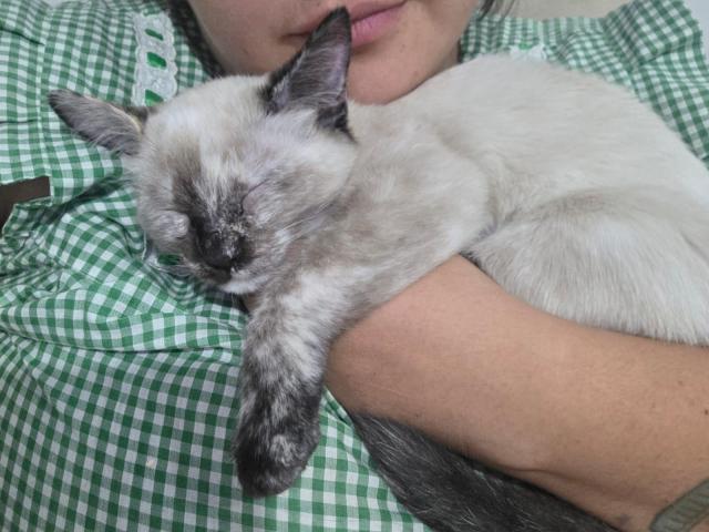 Pimienta tiene aprox 3-4 meses ella fue rescatada de la calle,alguien horrible la fue a tirar en medio de la lluvia junto con sus hermanitos a la calle,de todos solo falta ella y te está esperando para darte mucho amor,Pimienta está esterilizada,vacunada,desparasitada,despulgada y con su prueba de sida-leucemia negativa si te interesa adoptarla envíame mensaje al 56 24 25 01 35