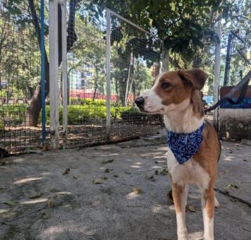 Description: Soy una perrita de tamaño mediano a grande , tengo de1.5 a 2 años aproximadamente. Estoy esterilizada y cuento con cartilla de vacunación. La persona que me rescató es de bajos recursos y me ha resguardado sin encontrar aún un hogar para mí. Estoy en un lugar muy pequeño donde no entra luz y no puedo moverme bien. Se siente una prisión pues a pesar de que recibo alimento, caricias y tengo la compañía de mi amiga con manchitas la vida se siente muy sola cuando ni si quiera puedes salir.